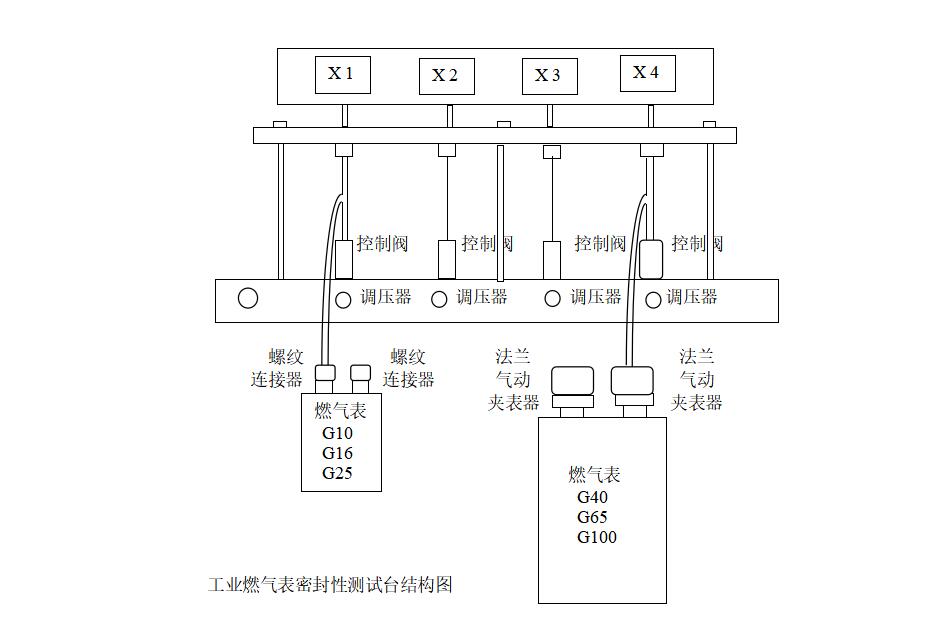 2 連接好各臺位的燃氣表,分別打開控制閥,向被測表施加最大工作壓力1.5倍的測試壓力,然后關(guān)閉控制閥。